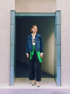 伸縮性があり、快適な穿き心地と美しいシルエットを両立しました。ハイウエストデザインが腰位置を高く見せ、脚長効果も期待できる一枚。