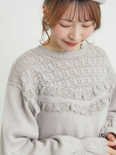 透かし柄のデザインが繊細で可愛らしい印象を与えるニット。