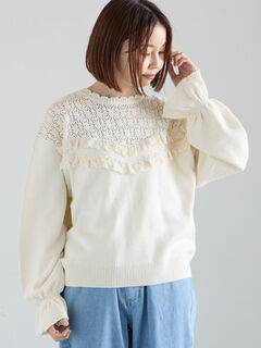透かし柄切替レースニット