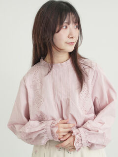 ほんのりと透け感のあるレースデザインがキュートなブラウス。