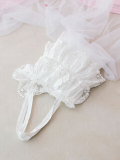 大きめスカラップがポイントのオリジナル花柄レースを2段重ねてつけています。