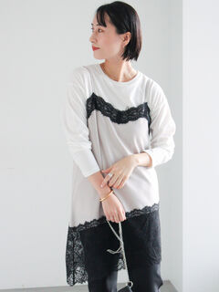 胸元と裾にあしらった繊細なレースが、レイヤードスタイルのアクセントになります。
