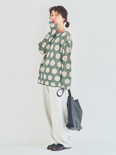 ラクな着心地を演出するウエストゴム仕様がポイント。