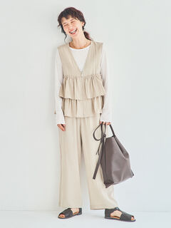 • (セットアップ可)ストレートパンツ(ベージュ)|Samansa Mos2(サマンサ モスモス)通販 カラー:ベージュ モデル身長:165cm 着用サイズ:Free-M