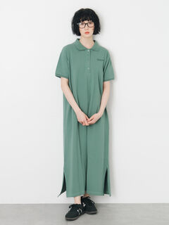 胸元の英字ロゴ刺しゅうがワンポイントになるポロワンピース。