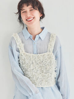 ふんわりとしたファンシーヤーンが華やかな印象を演出するビスチェ。