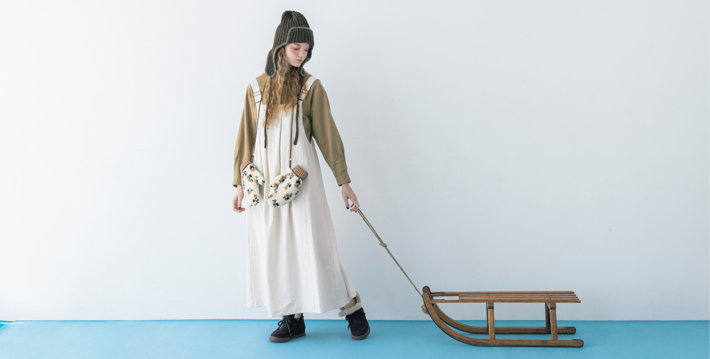 クロスリネンは、リネンとラミーふたつの麻糸を独自に組み合わせたSamansa Mos2 オリジナルの生地。新作は5色のバリエーション。小花柄やシックな冬色をのぞかせてレイヤードを楽しんで。