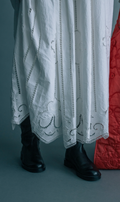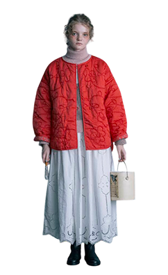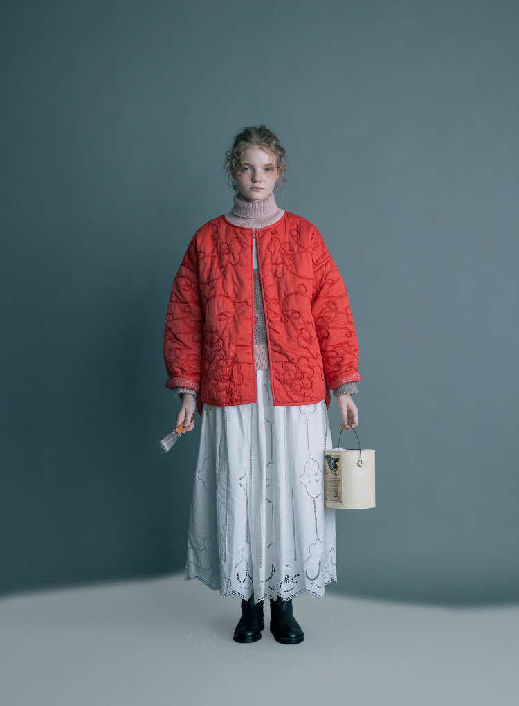 Jacket ¥19,800 [tax incl.] red:kinari,black Knit ¥15,400 [tax incl.] pink:red Skirt ¥19,800 [tax incl.] white:blackJacket ¥19,800 [tax incl.] red:kinari,black Knit ¥15,400 [tax incl.] pink:red Skirt ¥19,800 [tax incl.] white:black