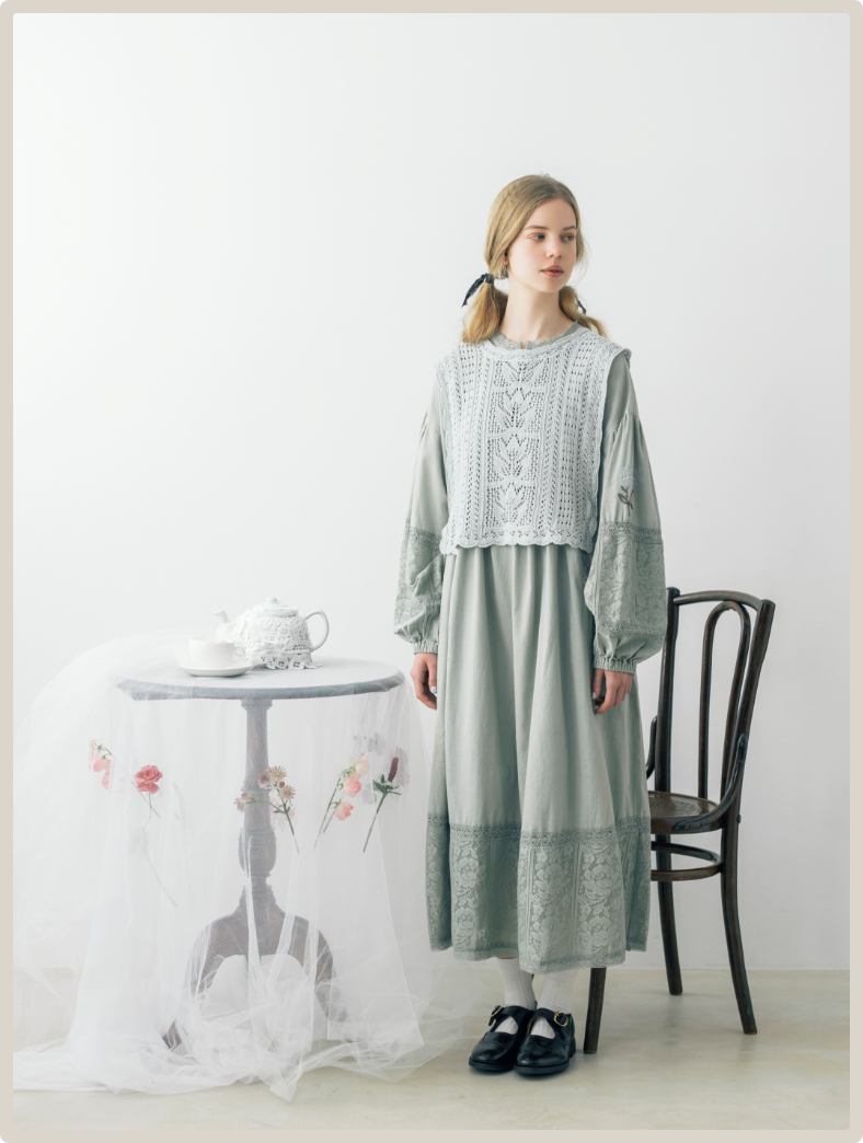 One-piece ¥19,800 [tax incl.] mint:white,charcoal-gray Vest ¥11,000 [tax incl.] mint:beige,black