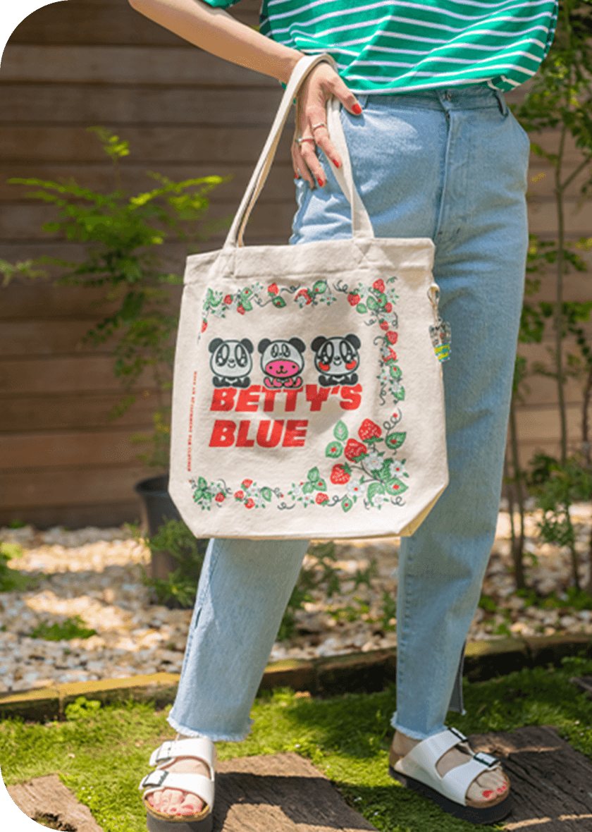 BETTY′S BLUEのいちご柄ショッパーがコラボ仕様で登場!いちご柄にキャラクターたちをONしたトートバッグ。メインバッグはもちろん、あの頃のようにサブバッグとしても…◎ 季節問わずに使える定番アイテムです★