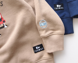 袖口の機関車の刺繍、ネームがポイント。